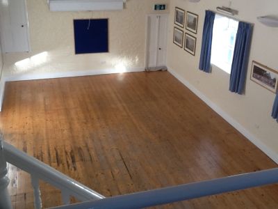 The double-door main entrance provides easy disabled access and leads into a roomy foyer, off which is the main hall, kitchen and toilet facilities. The main hall measures 11.6m x 5.8m. There is a light mezzanine area measuring 6.0m x 5.8m accessed off the hall by a staircase. The space can accommodate 6o people seated and 90 people standing, and there are sufficient chairs and easily erected tables of various sizes. There is a projector screen and efficient electric heating system.